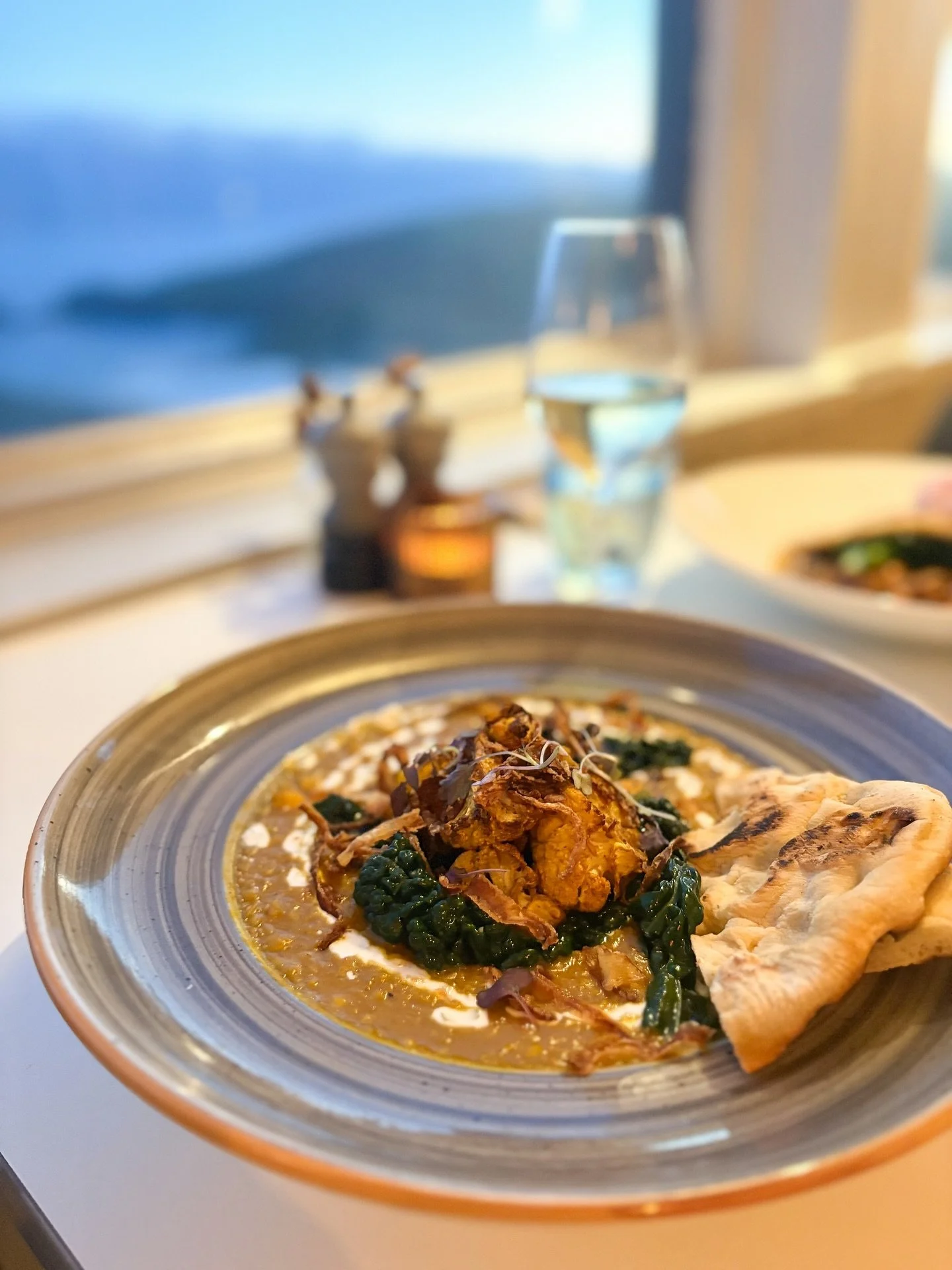 “Perched on a cliffside and boasting gorgeous bay views, this restaurant really does provide a setting to die for.”