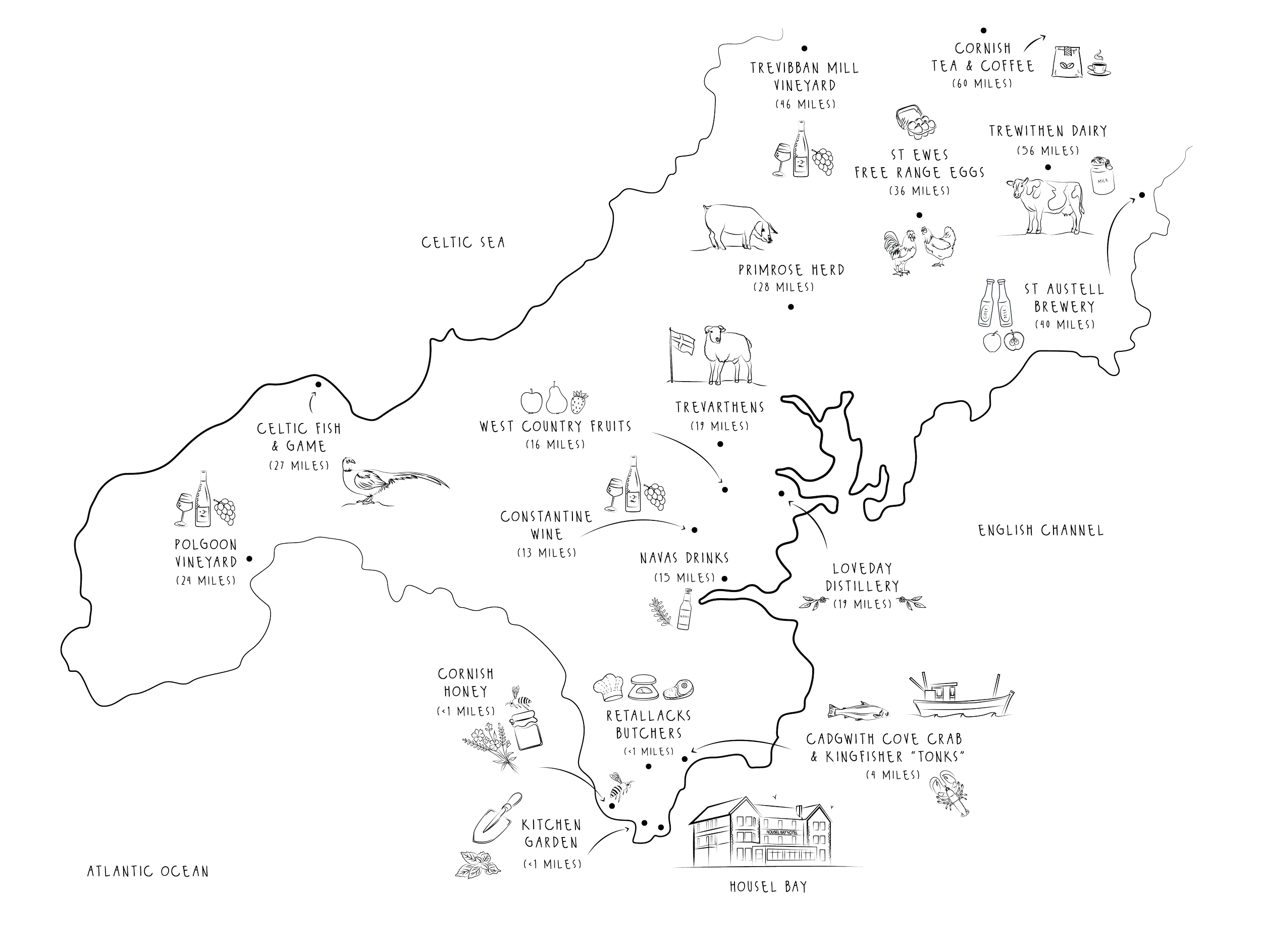 Cornwall has such an abundant array of seasonal produce that it simply doesn’t make sense to utilise anything else. It’s a joy to work with such incredible local suppliers, who share our values, sourcing and growing the best quality produce in Cornwall.